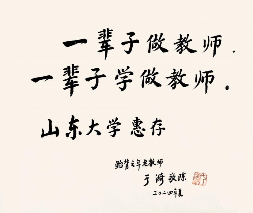 ,专门题赠“一辈子做教师,一辈子学做教师”的书法作品勉励后学,并手书贺信。