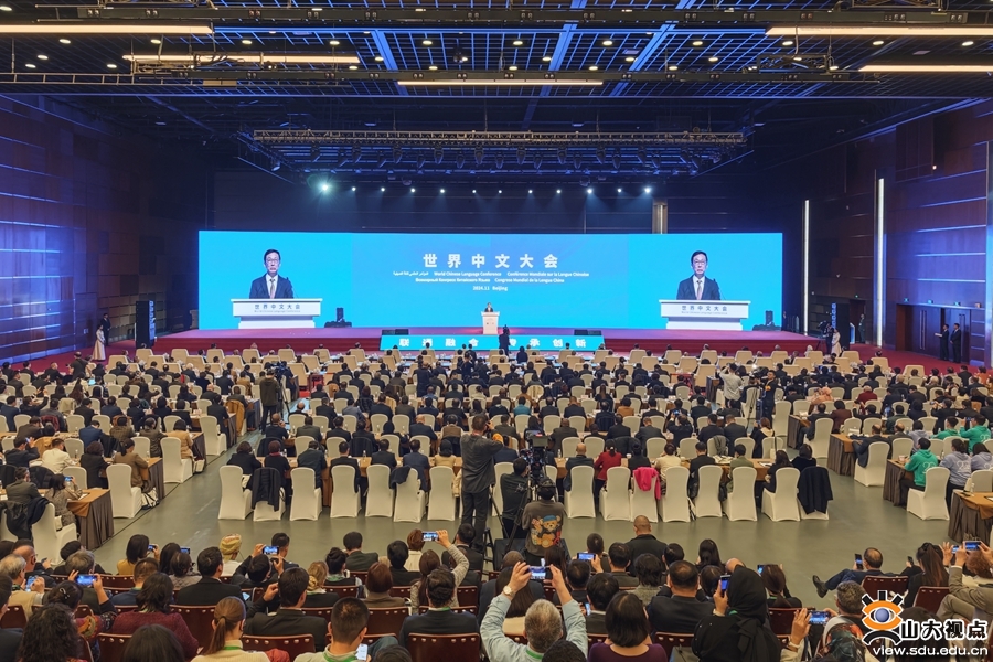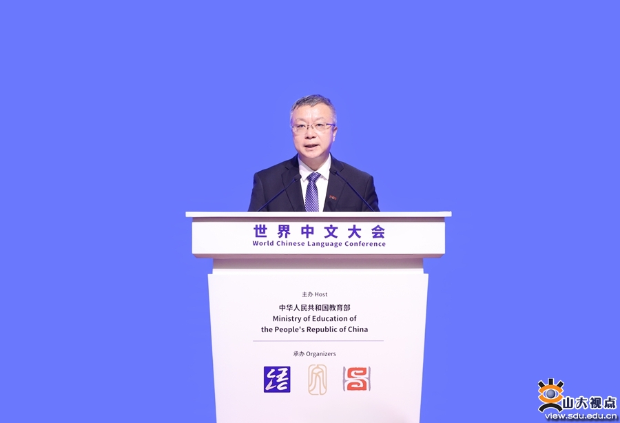11月15日,2024世界中文大会开幕式及全体大会在北京国家会议中心举行。国家副主席韩正出席开幕式,宣读国家主席习近平的贺信并致辞,教育部部长怀进鹏主持开幕式并作大会主旨报告,校党委书记任友群作为中方高校代表作大会发言。