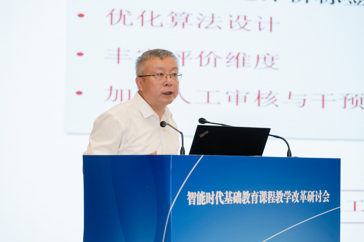 任友群作了题为“智能时代的人才培养体系变革:重构课程、师资与评价体系”的主旨报告。他指出,人工智能赋能基础教育课程教学改革是当下的时代命题;要重构课程结构,革新课程设置理念,分层推进、打破壁垒、创新机制,做好课程改革的加减法;要重构师资,加强教师教育供给侧改革,创新教师教育发展模式,完善教师质量保障体系;要重构评价,坚持核心素养导向,加大政策试点和迭代,加快评价范式转型,防控技术风险。