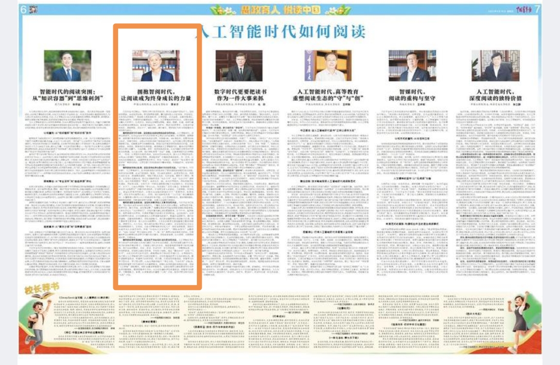 习近平总书记指出:“要努力学习各方面知识,努力在实践中增加才干,加快知识更新,优化知识结构,拓宽眼界和视野,着力避免陷入少知而迷、不知而盲、无知而乱的困境。”阅读是人类获取知识、启智增慧、培养道德,支撑终身成长,不断适应时代、引领时代的重要途径。当前,人工智能技术方兴未艾,正极大地改变着人们的学习、生活方式,阅读也变得更加智能、高效、便捷、有趣。新时代青年应积极主动拥抱AI,使其成为爱读书、读好书、善读书的好帮手,在阅读中感知快乐、汲取智慧、增长才干、锤炼品格、提升素养,更好成长为担当民族复兴大任的时代新人。