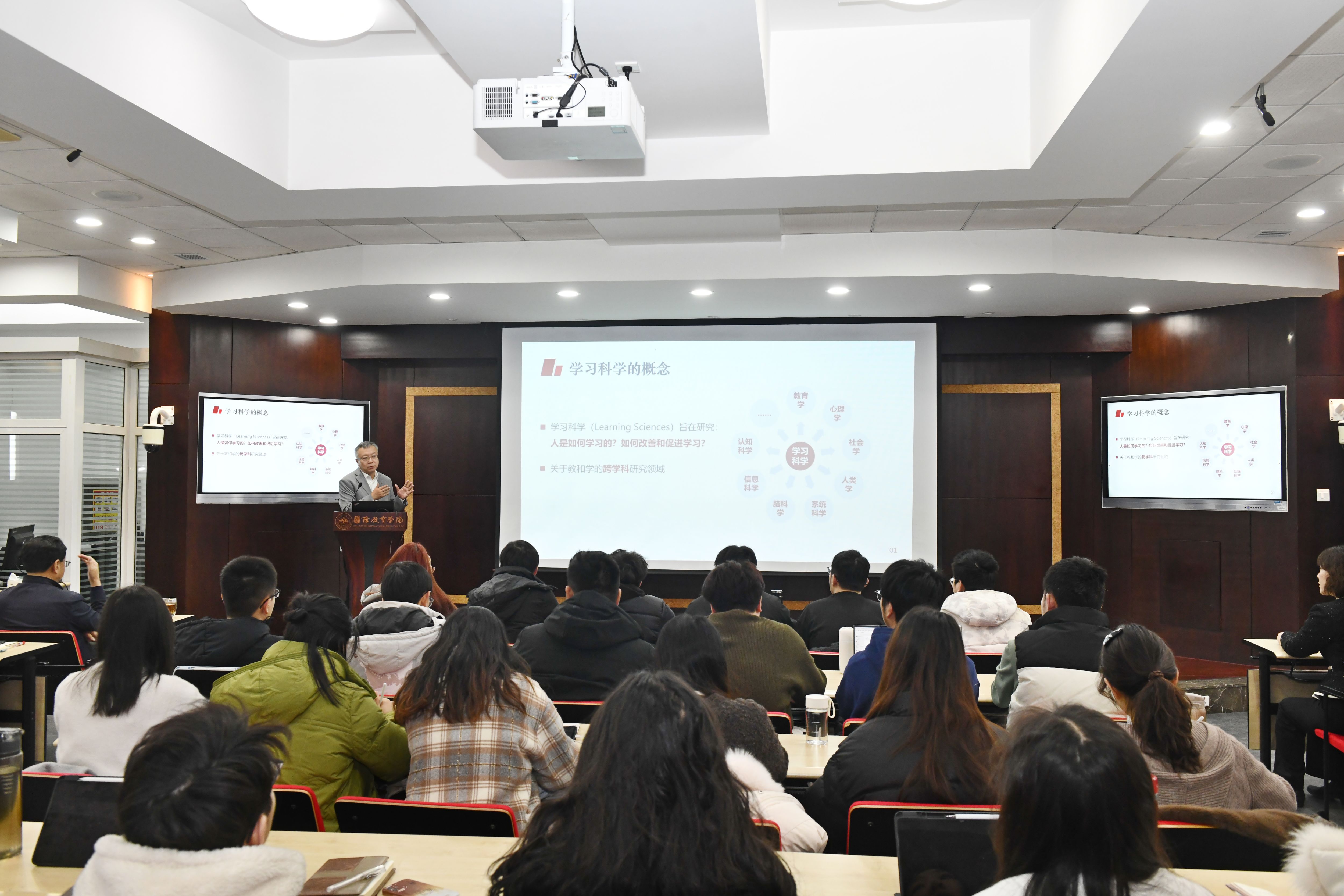 1月12日,成人视频 党委书记任友群教授为“国优计划”学生讲授教育模块专业核心课程《学习科学与技术》第一讲。任友群从学习科学的研究渊源、研究框架及研究意义三个层面,逐步展开课程讲解。他强调学习科学是关于教和学的跨学科研究领域,并基于学术基础、理论溯源、建构主义、本土案例、发展历程等多个维度进行深度阐述。通过举例“猩猩Nim Chimpsky”、“双语学习”,向同学们阐述了学习科学基于脑科学及人工智能、大数据的研...